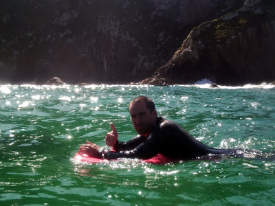 Lleva unos baños sorprendiéndome, primero aparta el surf de su vida unos meses, coge un cortxo(inteligente) y se pone hacer Dropknee, muy bien por cierto, con el surf tiene bastante camino recorrido, pero ultimamente le sobran las aletas, y se nos pone a hacer Stand up, y doy fe que se marca las paredes y pega giritos.Esta enganchao. Mi conclusión es que volverá a su origen, y que esto le servirá para mucho , pues no nos olvidemos que ahora está haciendo surf sin killas.